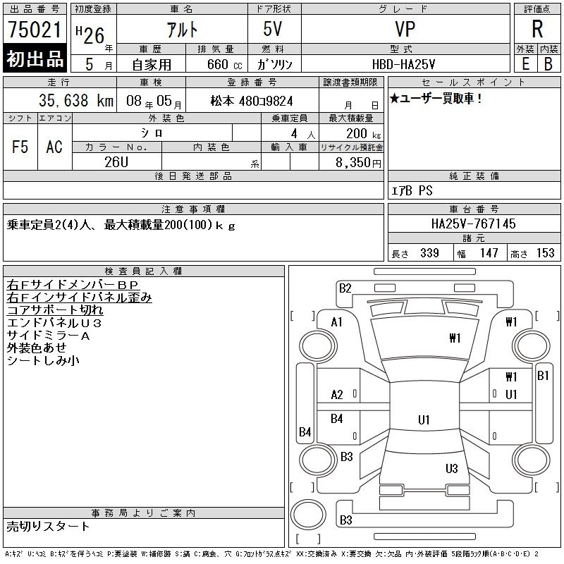 Аукционный лист SUZUKI ALTO VAN 2014